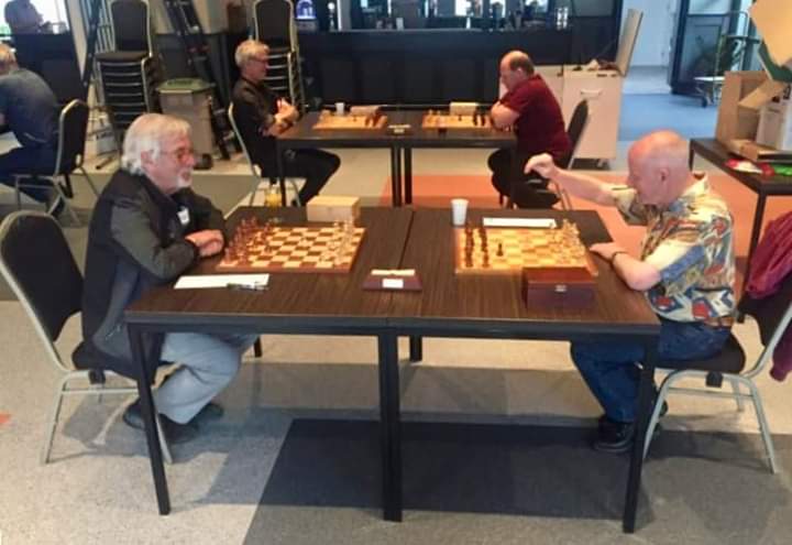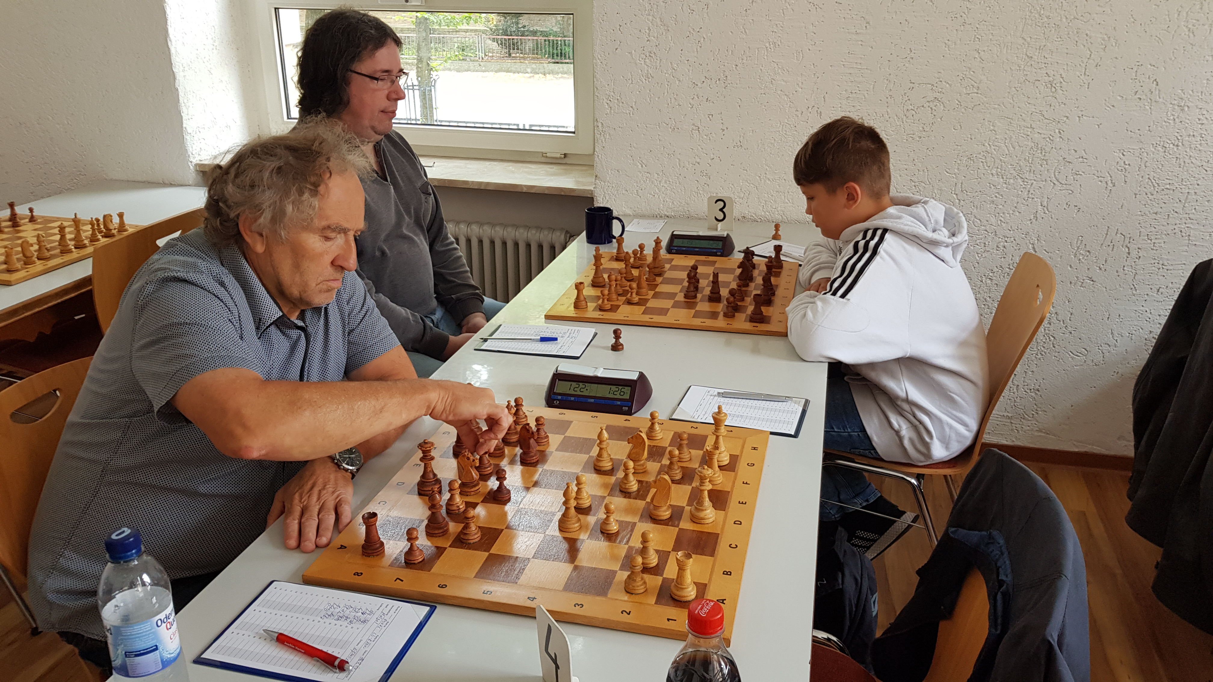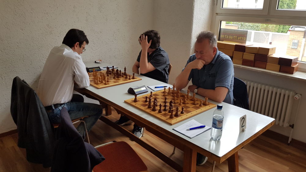 4 Bännjer Spieler waren am Fronleichnams-WE im Einsatz auf dem Weilerbacher RLP-Open, topp Quote ! neben Josua Scherer (oben), waren Andre Bold, Michael Schaum und Adi Leis engagierte Spieler im Feld. Stellung von Josua ist einfach zu gewinnen, Vorschläge ? In der Partie quälte sich Josua noch einige Zeit nach Lxd4 zum Sieg, jedoch zeigte er ansehnliches Schach und hätte einen 1950er durchaus schlagen können, jedoch remis !Ergebnisse: link...RLP Open 2019 Weilerbach beachten: Stand Rd.6 link...RLP Open 2019 Weilerbach alle Infos... links: Die "Altmeister" Michael Schaum und Adi Leis einträchtig nebeneinander !Jugend